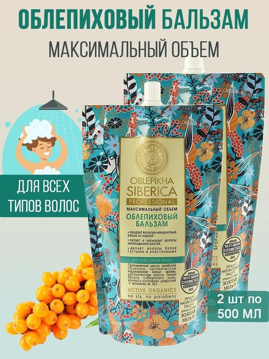 Natura Sibericа Бальзам для всех типов волос Объем и блеск Дой пак 500мл,2шт