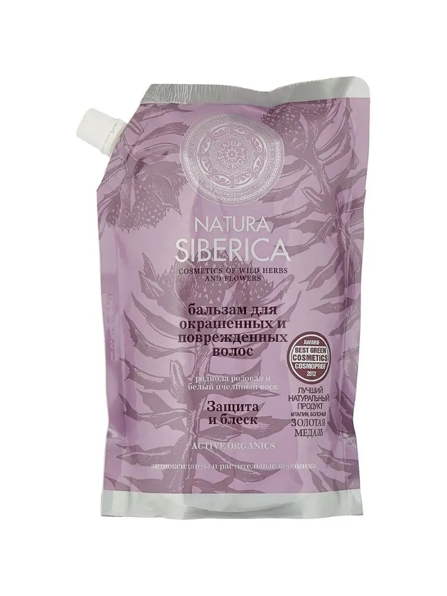 Natura Siberica Бальзам Защита и блеск для окрашенных и поврежденных волос 500мл дой-пак. В сочетании с родиолой розовой, белый пчелиный воск (White beeswax) обеспечивает естественный блеск волосам, а масло даурской сои, содержащее большое количество ценного растительного белка, нормализует структуру поврежденного волоса. Способ применения: Нанести бальзам на влажные вымытые волосы, распределить равномерно по всей длине, оставить на 1-2 минуты, смыть водой. Состав: Aqua with infusions of Rhodiola Rosea Root Extractwh (экстракт родиолы розовой); Panax Ginseng Root Extract* (экстракт женьшеня); Chamomilla Recutita (Matricaria) Flower Water*(экстракт ромашки); Pinus Sibirica Needle Extractwh (экстракт кедра сибирского); Festuca Altaica Extractwh (экстракт овсяницы алтайской); Angelica Archangelica Root Water (экстракт ангелики); Helichrysum Arenarium Flower Extract (экстракт бессмертника); Behentrimonium Chloride (из рапсового масла); Cetearyl Alcohol (из пальмового масла); Guar Hydroxypropyltrimonium Chloride (из гуаровой смолы); Hydrolyzed Wheat Protein (из протеинов пшеницы); Triticum Vulgare Germ Oil* (масло зародышей пшеницы); Pinus Sibirica Seed OilPinus Sibirica Needle Extract (кедровое молочко); Cera Alba* (белый пчелиный воск); Glycine Soja Oil* (масло даурской сои); Pinus Sibirica Seed Oil Polyglyceryl–6 Estersps; Phospholipids (and) Sphingolipids (растительные керамиды); Tocopherol (витамин Е); Sodium Ascorbyl Phosphate (витамин С); Ritinyl Palmitate (витамин А); Benzyl Alcohol; Benzoic Acid; Sorbic Acid; Parfum; Citric Acid.* – органические ингредиенты.WH – органические экстракты дикорастущих растений Сибири.