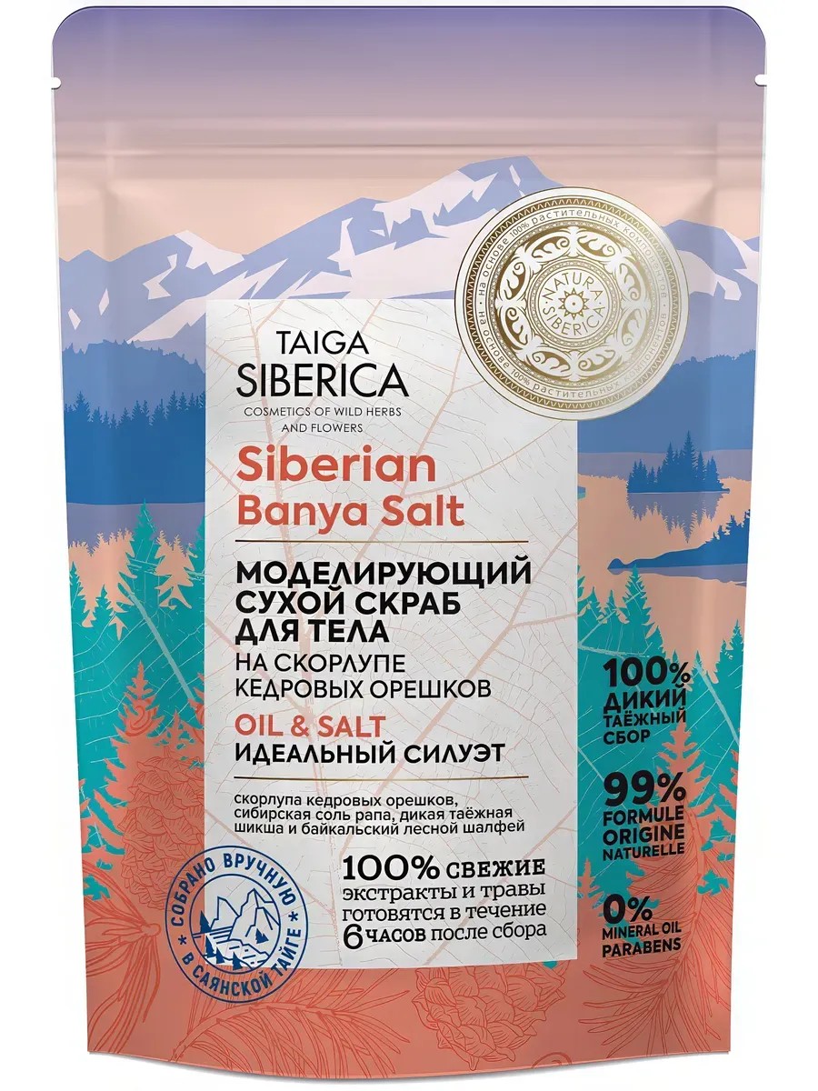 Скраб Natura Siberica Taiga Siberian Banya Salt Идеальный силуэт для тела, сухой, моделирующий, на скорлупе кедровых орешков, 250 мл. Состав:Maris Sal (сибирская соль рапа), Organic Pinus Sibirica Seed Oil (органическое кедровое масло), Organic Ribes Nigrum Seed Oil (органическое масло семян черной смородины), Pinus Sibirica Shell Powder (абразив скорлупы кедровых орешков), Organic Empetrum Nigrum Fruit Extract (органический экстракт дикой таежной шикши), Organic Salvia Officinalis Leaf Extract (органический экстракт байкальского лесного шалфея), Chamomilla Recutita Flower Powder (цветы ромашки), Glycerin, Poa Arctica Flower/Leaf/Stem ExtractWH (экстракт мятлика арктического), Picris Kamtschatica Flower/Leaf/Stem ExtractWH (экстракт горчака камчатского), Schisandra Chinensis Fruit ExtractFE (экстракт лимонника нанайского), Organic Rubus Sachalinensis Leaf Extract (органический экстракт малины сахалинской), Organic Silybum Marianum Extract (органический экстракт сибирского чертополоха), Rhododendron Adamsii Leaf/Stem ExtractFE (экстракт дикого саган-дайля), Organic Mentha Arvensis Leaf Extract (органический экстракт мяты алтайской), Tocopherol (витамин Е), Parfum, Eugenol. (WH) Органические экстракты дикорастущих растений (FE) Свежие экстракты дикорастущих растений