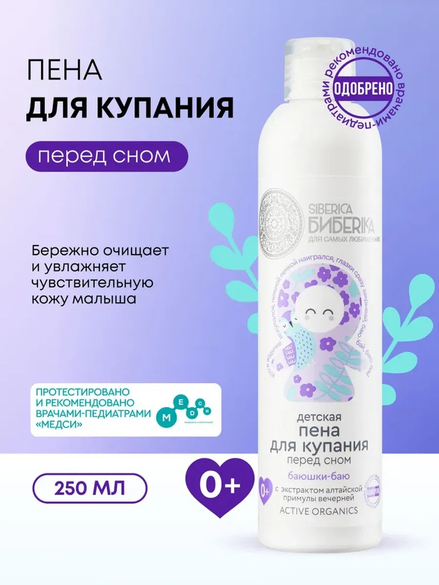 Natura Siberica Biberika "Bayushki-bayu" Baby Bath Foam 0+ (250 ml) helps set the stage for healthy, restful sleep and gently cares for skin from the first days of life.