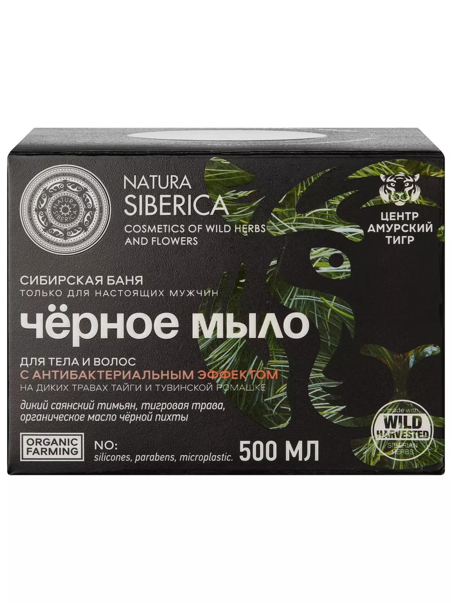 Черное мыло для тела и волос «Сибирская баня» с богатым составом антибактериальных и противомикробных природных компонентов на 100% очищает тело и волосы. Способствует повышению общего иммунитета организма. Аромат диких сибирских трав полностью погружает в атмосферу настоящей сибирской бани. С ним принятие душа или любимой ванны превращается в совершенный банный ритуал.