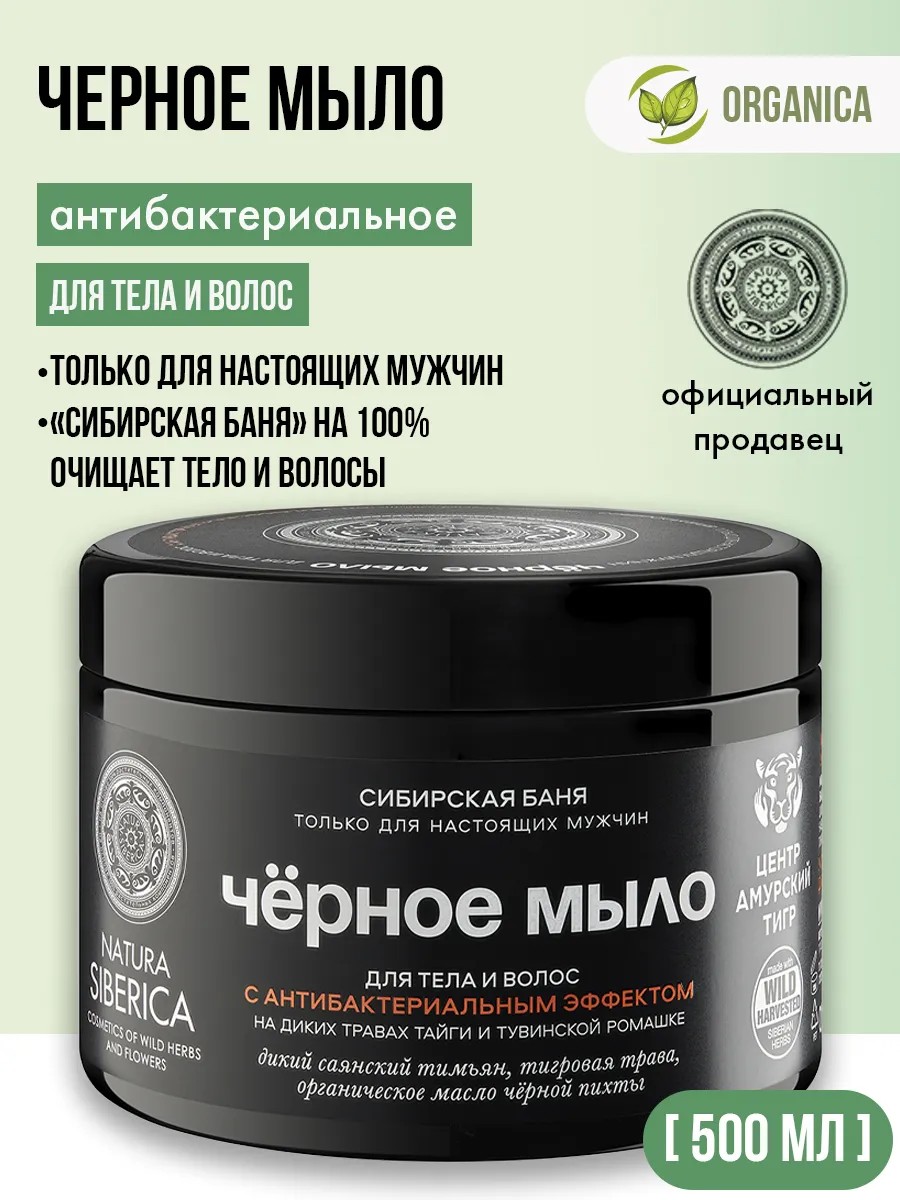 Черное мыло «Сибирская баня» с богатым составом антибактериальных и противомикробных природных компонентов на 100% очищает тело и волосы. Способствует повышению общего иммунитета организма.Аромат сибирских трав полностью погружает в атмосферу настоящей сибирской бани.Экстракт аптечной ромашки обладает сильнейшими природными антибактериальными свойствами, благодаря большому содержанию дубильных веществ и азулена.Органическое масло черной пихты, сильнейший натуральный антисептик, эффективно очищает кожу и волосы, повышает иммунитет клеток, защищает от воздействия окружающей среды.Экстракт тигровой травы, известной мощнейшими антиоксидантными свойствами, глубоко питает кожу и защищает организм. Содержит танины (до 25%), флавоноиды и фитостеролы.Дикий саянский тимьян содержит дубильные вещества и тимол, а также витамины группы В и С.Отлично очищает кожу и повышает общий тонус организма.