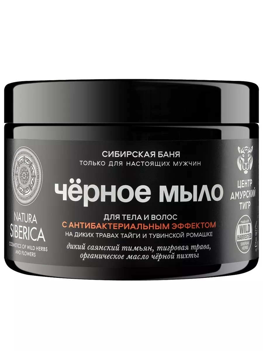 Черное мыло для тела и волос «Сибирская баня» с богатым составом антибактериальных и противомикробных природных компонентов на 100% очищает тело и волосы. Способствует повышению общего иммунитета организма. Аромат диких сибирских трав полностью погружает в атмосферу настоящей сибирской бани. С ним принятие душа или любимой ванны превращается в совершенный банный ритуал.