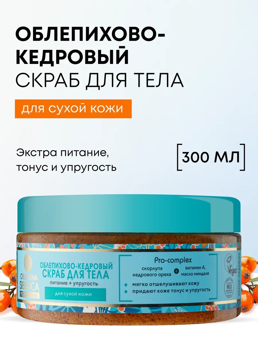 Облепихово-кедровый скраб для тела Natura Siberica Oblepikha 300 мл дает бережное отшелушивание и очищение, мягко и деликатно массирует кожу. Богатый состав способствует интенсивному питанию и увлажнению.