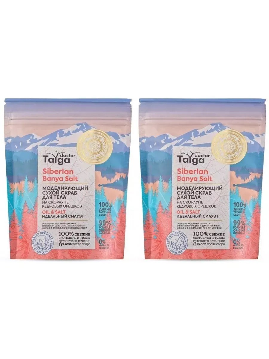 Комплект из 2 штук. Общий объем комплекта - 500 мл. Natura Siberica, Doctor Taiga Скраб для тела сухой Моделирующий. Идеальный силуэт, 250 мл. Таежные растения в сочетание с маслами и натуральными скрабирующими частичками оказывают эффект микромассажа, активно обновляют клетки кожи, тонизируют и питают.Скорлупа кедровых орешков бережно отшелушивают кожу, придают ей гладкость и ухоженный вид. Сибирская соль рапа эффективно обновляет клетки кожи, выводит лишнюю влагу, оказывает лимфодренажный эффект.Дикая таежная шикша содержит в 2 раза больше витамина С, чем лимон, а так же кофейную кислоту, которые тонизируют и придают коже сияющий вид.Байкальский лесной шалфей - источник витамина А, Е и калия, которые выводят токсины, питают и наполняет кожу жизненной энергией.
