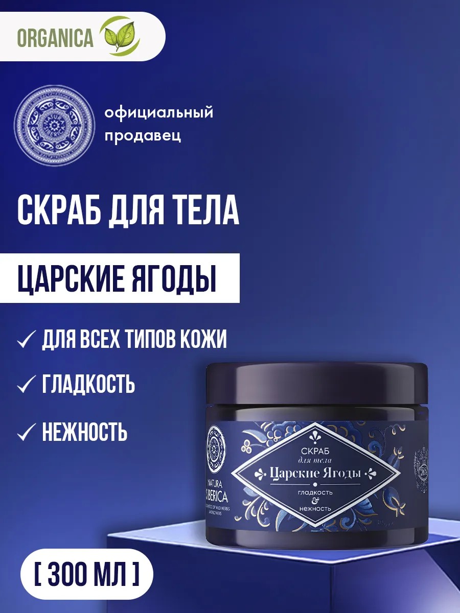 Natura Siberica Gzhel "Royal Berries" Body Scrub 300 ml gently exfoliates and cleanses the skin, leaving it smooth and soft.