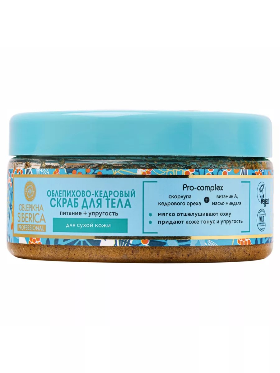 Скраб для тела мягко очищает и отшелушивает кожу, придавая ей необычайную мягкость, тонус и упругость. Богатый состав скраба для сухой кожи способствует интенсивному питанию и увлажнению кожи. Органическое масло алтайской облепихи - источник жирных кислот Омега 3,6,9 и редкой Омега 7, насыщает кожу полезными макро- и микроэле- ментами. Масло миндаля, чрезвычайно богатое витаминами, обладает питатель- ными и увлажняющими свойствами. Скорлупа кедрового ореха мягко отшелушивает кожу, придавай ей свежий вид. Витамин А устраняет потерю влаги, наполняет кожу энергией и жизненной силой.