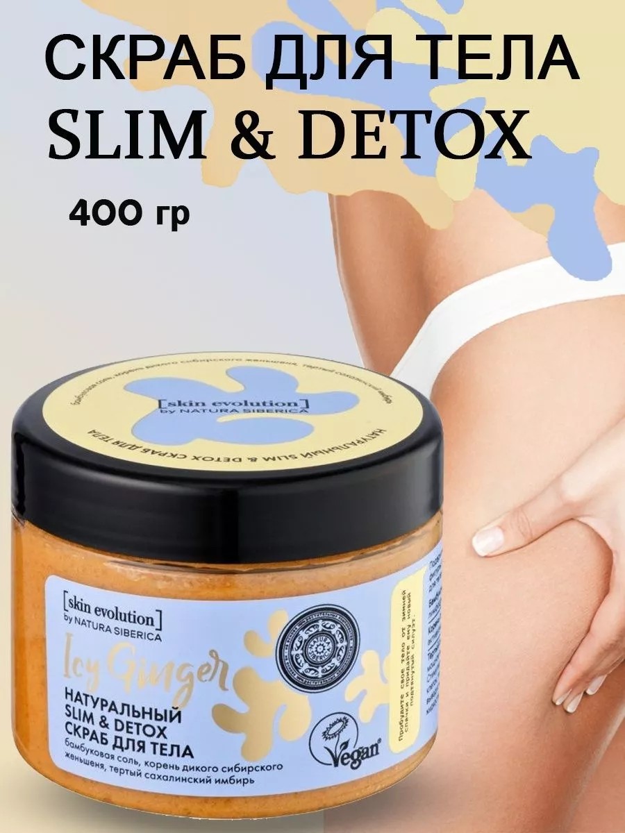 Подарите себе легкость и стройность фигуры, вместе с SLIM & DETOX скрабом для тела ICY GINGER. В основе уникальный комплекс сибирских растений, разглаживает и смягчает кожу, предотвращая появление целлюлита.Бамбуковая соль создает лимфодренажный и detox-эффект.Корень сибирского женьшеня активизирует микроциркуляцию.Тертый сахалинский имбирь оказывает мощное антиоксидантное действие. Стимулирует процессы регенерации клеток, тонизирует и подтягивает кожу, выводит из тканей токсины и излишки жидкости.Способ применения: нанесите скраб на влажную кожу тела легкими массирующими движениями, смойте теплой водой.Состав: Sodium Chloride/Bambusa Vulgaris Leaf/Stem Extract (бамбуковая соль) with infusions of Panax Ginseng Root ExtractWH (экстракт корня дикого сибирского женьшеня), Zingiber Officinale Root Powder* (тертый органический имбирь), Juniperus Sibirica Needle ExtractWH (экстракт можжевельника сибирского), Picea Obovata Needle ExtractWH (экстракт ели сибирской).