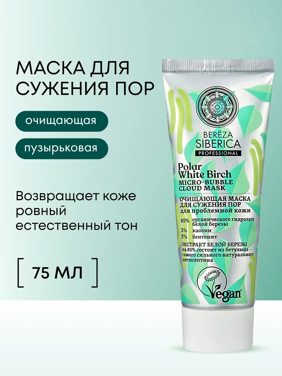 Глиняная маска для сужения пор Очищающая от Natura Siberica оказывает противовоспалительное действие, придавая коже здоровый и ровный тон. Натуральные ингредиенты удаляют излишки кожного сала, выводят токсины и загрязнения. Каолин - это белая глина, которая обладает антибактериальным действием. Она эффективно борется с проблемами черных точек, акне и прыщей. Отлично вытягивает всю грязь и остатки макияжа. Выравнивает тон кожи, придает лицу свежий, здоровый и отдохнувший вид. Бентонит- это голубая глина, которая отлично подходит для жирной, проблемной и комбинированной кожи. Обеспечивает глубокое очищение, освобождает поры от кожного сала, нормализует процессы себорегуляции и матирует, убирая жирный блеск. Органические экстракты березы и ромашки оказывают успокаивающее действие, отлично снимают воспаления после чистки. Масочка эффективно проникает в глубокие слои дермы, оказывая питание, увлажнение и детокс. Кожа подростков чаще склонна к жирности и появлению недостатков. Наша маска прекрасно подойдет для комплексного воздействия на их молодую кожу, не пересушивая ее.