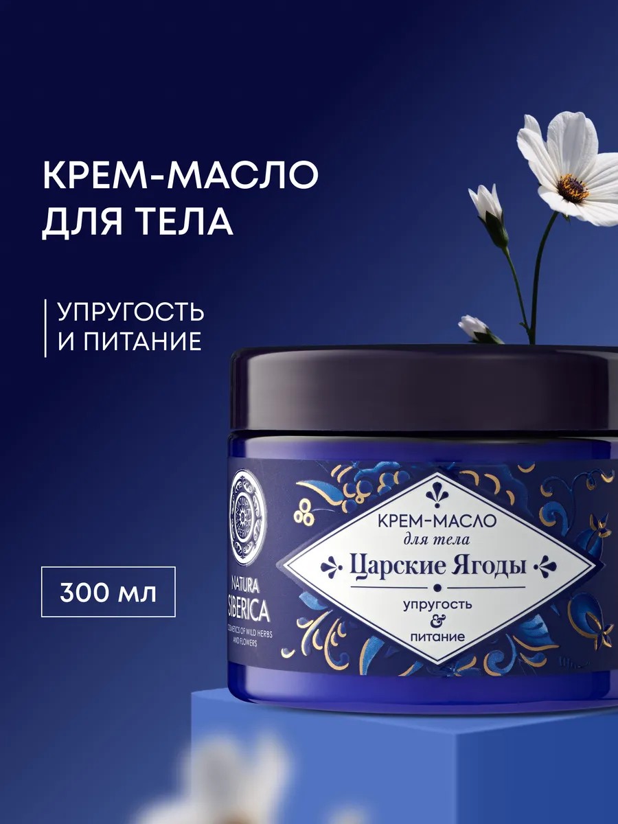 Natura Siberica Gzhel "Royal Berries" Body Cream-Butter, 300 ml, is formulated with organic extracts of Arctic raspberries and Sakhalin cloudberries. The nourishing formula deeply nourishes the skin, restoring firmness and elasticity.
