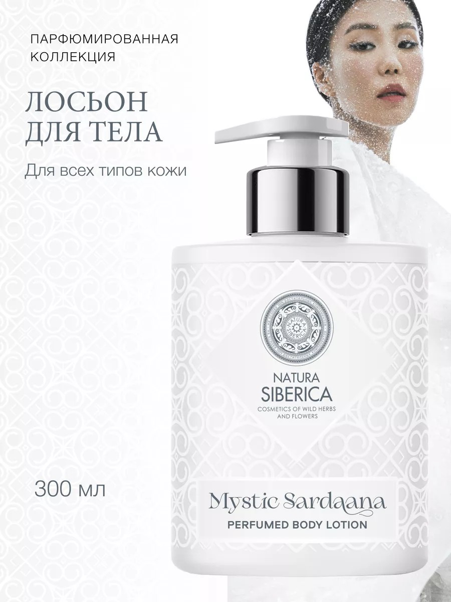 Парфюмированный лосьон для тела Natura Siberica Mystic Sardaana perfumed body lotion 300 мл с органическим экстрактом и нежным, изысканным ароматом лилии Сардаана мгновенно впитывается, насыщает кожу влагой и питательными веществами, придает гладкость и бархатистость. Пирамиду парфюмерной композиции открывает зеленое яблоко, сердце распускается на теле цветами белой лилии, в базе — ноты мускуса и сандала.