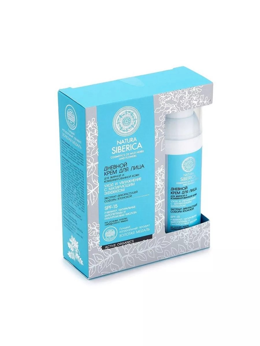 Бренд Natura Siberica - первый российский бренд качественной органической косметики. Natura Siberica использует удивительные свойства сибирских трав и растений, чтобы передать всю их силу для сохранения молодости и красоты кожи и волос. Все травы, на которых основана косметика, собираются вручную.NATURA SIBERICA КРЕМ ДЛЯ ЛИЦА ДНЕВНОЙ ДЛЯ ЖИРНОЙ И КОМБИНИРОВАННОЙ КОЖИ УХОД И УВЛАЖНЕНИЕ С МАТИРУЮЩИМ ЭФФЕКТОМ SPF15 - крем для лица Natura Siberica содержит натуральные фитопептиды, которые стимулируют синтез коллагенов, гиалуроновую кислоту увлажняющую кожу, витамин С повышающий защитные функции и фактор SPF-15 надежно защищающий кожу от воздействия ультрафиолетовых лучей.Серия средств для жирной и комбинированной кожи на основе софоры японской сохраняет свежесть кожи в течение всего дня и предупреждает появление жирного блеска. Софора японская (Saphora JaponiСa) является ценным лекарственным растением, являющимся природным стимулятором организма.Экстракт софоры японской содержит до 30% рутина (витамина Р), благодаря чему способствует укреплению кожи, ускоряет процессы регенерации, регулируют липидный баланс.Натуральные фитопептиды и гиалуроновая кислота - на основе масла сибиского кедраМеры предосторожности: при попадании в глаза, промыть их большим количеством воды.