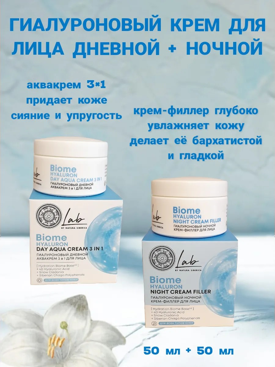 Набор кремов для лица Natura Siberica Lab Biome это прекрасный подарок, будь то Новый год, 8 марта или День рождения. Дневной и ночной крем для лица подарочный это прекрасный выбор. Уникальная формула кремов, обогащенная гиалуроном, способствует разглаживанию морщин и повышению упругости кожи, делая ее более подтянутой и сияющей. Легкий крем для лица с пробиотиками быстро впитывается, не оставляет жирного блеска, и подходит для всех типов кожи, в том числе для сухой и зрелой кожи. Питательный и увлажняющий крем от морщин подходить как для чувствительной, так и для очень сухой кожи лица. Омолаживающий антивозрастной крем от морщин идеален под макияж. Хорошо подходит как матирующий, успокаивающий, от пигментации. Крем для лица применяют для молодой кожи и для зрелой кожи 50 плюс, 55 плюс, 60 плюс, 65 плюс, 70 плюс. Обладает противовоспалительным эффектом, активные пептиды борются с мимическими морщинками и выравнивают тон лица, обеспечивают эластичность, упругость и гладкость. Эффективен от раздражения, шелушения и покраснения комбинированной и проблемной кожи. Гиалуроновый крем разглаживает даже глубокие морщины. Отбеливающий крем женский, восстанавливающий и регенерирующий делает кожу ровной и сияющей. Органическая натуральная косметика натура сиберика для ухода за лицом, шеи, декольте, рук и тела. Крем под макияж лица защитит от солнечных лучей, избавит от мимических морщин, раздражения, шелушения, покраснения. Прекрасный подарок бабушке, маме. Набор кремов для лица Natura Siberica — это идеальное решение для ежедневного ухода за кожей. Крем hualuron это лучшая уходовая косметика.