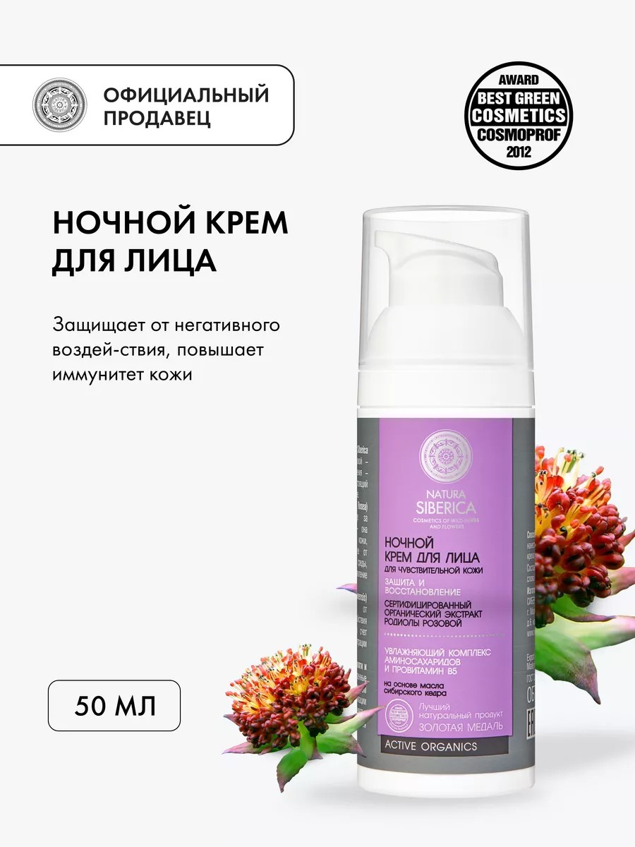 СоставAqua, Dicaprylyl Ether, Octyldodecanol, Glycerin, родиола розовая, Glyceryl Stearate; Pinus Sibirica Seed Oil Polyglyceryl-6 Esters PS, Tilingia Ajanensis Extract (тилингия аянская); Acetyl Glucosamine (аминосахариды), Cetearyl Alcohol, Cetearyl Glucoside; Melissa Officinalis Extract (мелисса)*, Spirae Ulmaria Extract(таволга); Panthenol (провитамин B5), Tocopherol (витамин Е), Sodium Stearoyl Glutamate; Sorbus Sibirica ExtractWH (рябина сибирская), водосбор сибирский, Sodium Polyacrylate; Dipeptide Diaminobutyroyl Benzylamide Diacetate, Palmitoyl Oligopeptide; Palmitoyl Tetrapeptide-7,Bisabolol, Benzoic Acid, Sorbic Acid, Benzyl Alcohol,Parfum