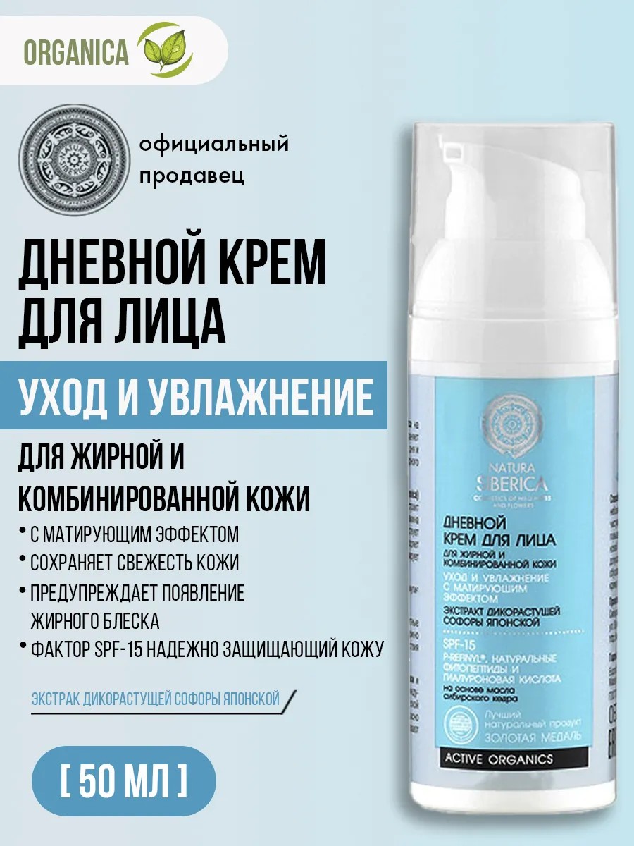 This face cream contains natural phytopeptides that stimulate collagen synthesis, hyaluronic acid that moisturizes the skin, vitamin C that enhances skin's protective functions, and SPF-15 that reliably protects the skin from UV rays. This line of products for oily and combination skin, based on Japanese pagoda tree, maintains freshness throughout the day and prevents shine.