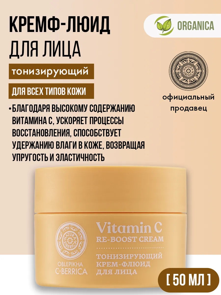 Крем флюид для лица легкий тонизирующий c витамином С 50 мл