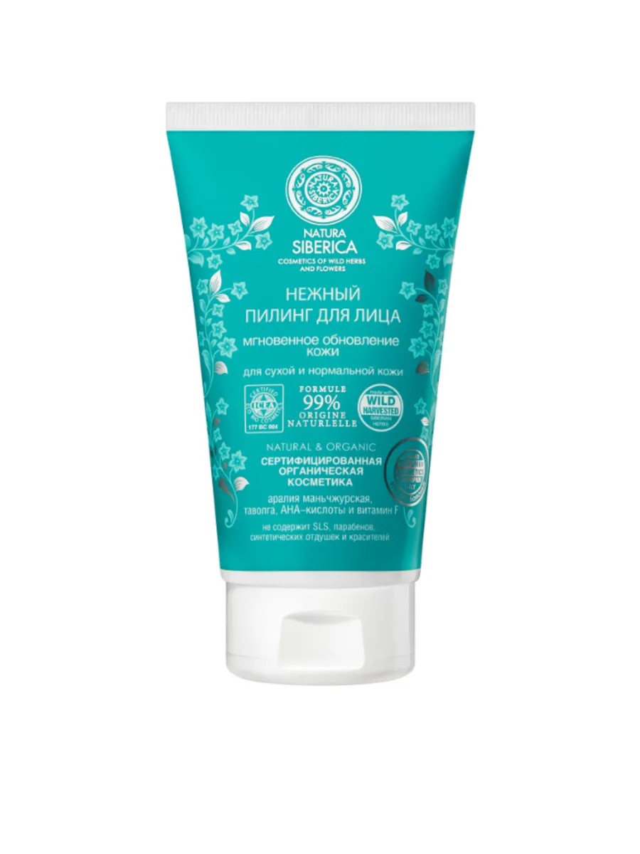 NATURA SIBERICA Мгновенный пилинг для лица на основе аралии маньчжурской, таволги, АНА-кислот и витамина F нежно отшелушивает и обновляет кожу, улучшая цвет лица. Усиливает защитные функции кожи, выравнивает и придает ей гладкость и упругость. Аралия маньчжурская помогает защитить кожу от климатических воздействий, повышает тонус и энергетику кожи. Таволга восстанавливает естественные регенеративные функции кожи. АНА-кислоты мягко отшелушивают кожу. Витамин F природный липид, способствующий обновлению клеток кожи, придающий ей упругость и эластичность. Подготавливает кожу к последующим этапам ухода и обеспечивает их максимальную эффективность.
