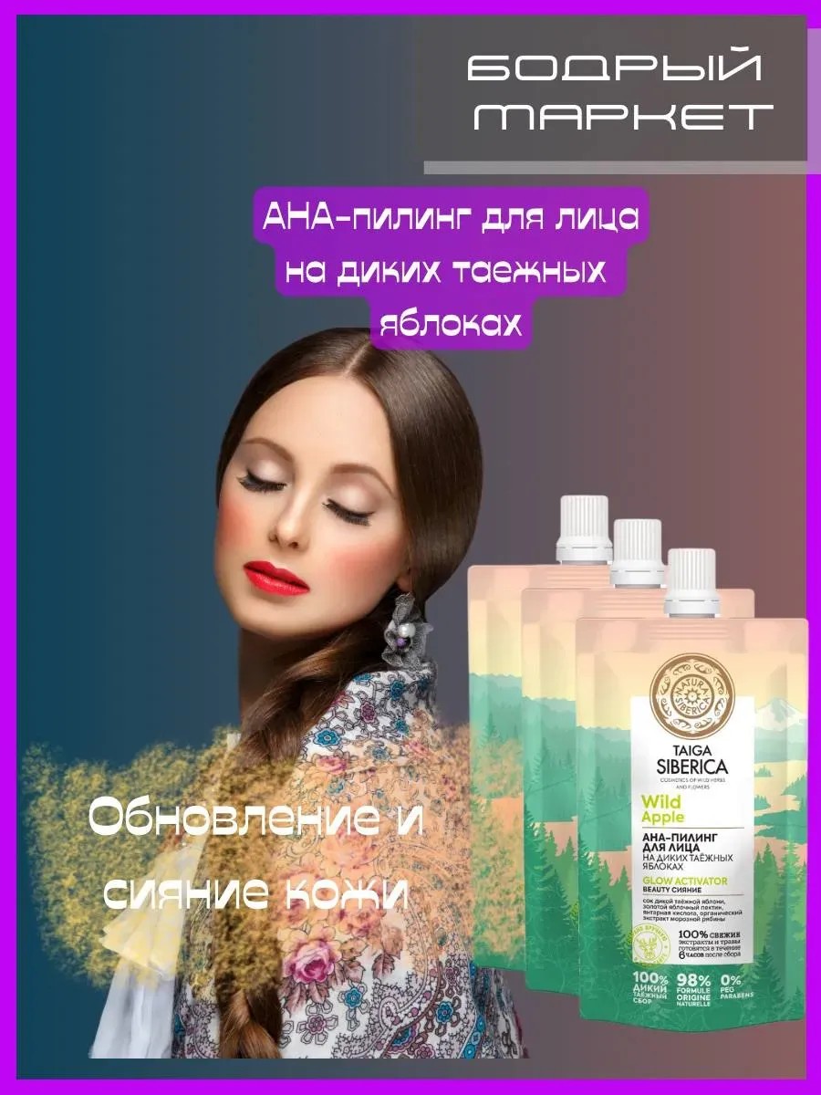The peeling formula is based on wild taiga apple juice, which contains 2 times more vitamin C than pineapple.