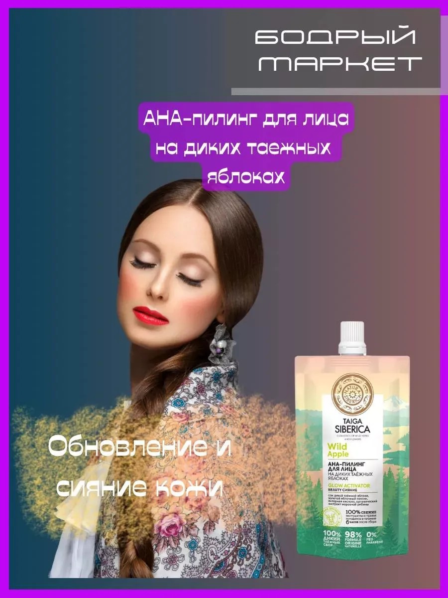 The peeling formula is based on wild taiga apple juice, which contains twice as much vitamin C as pineapple.