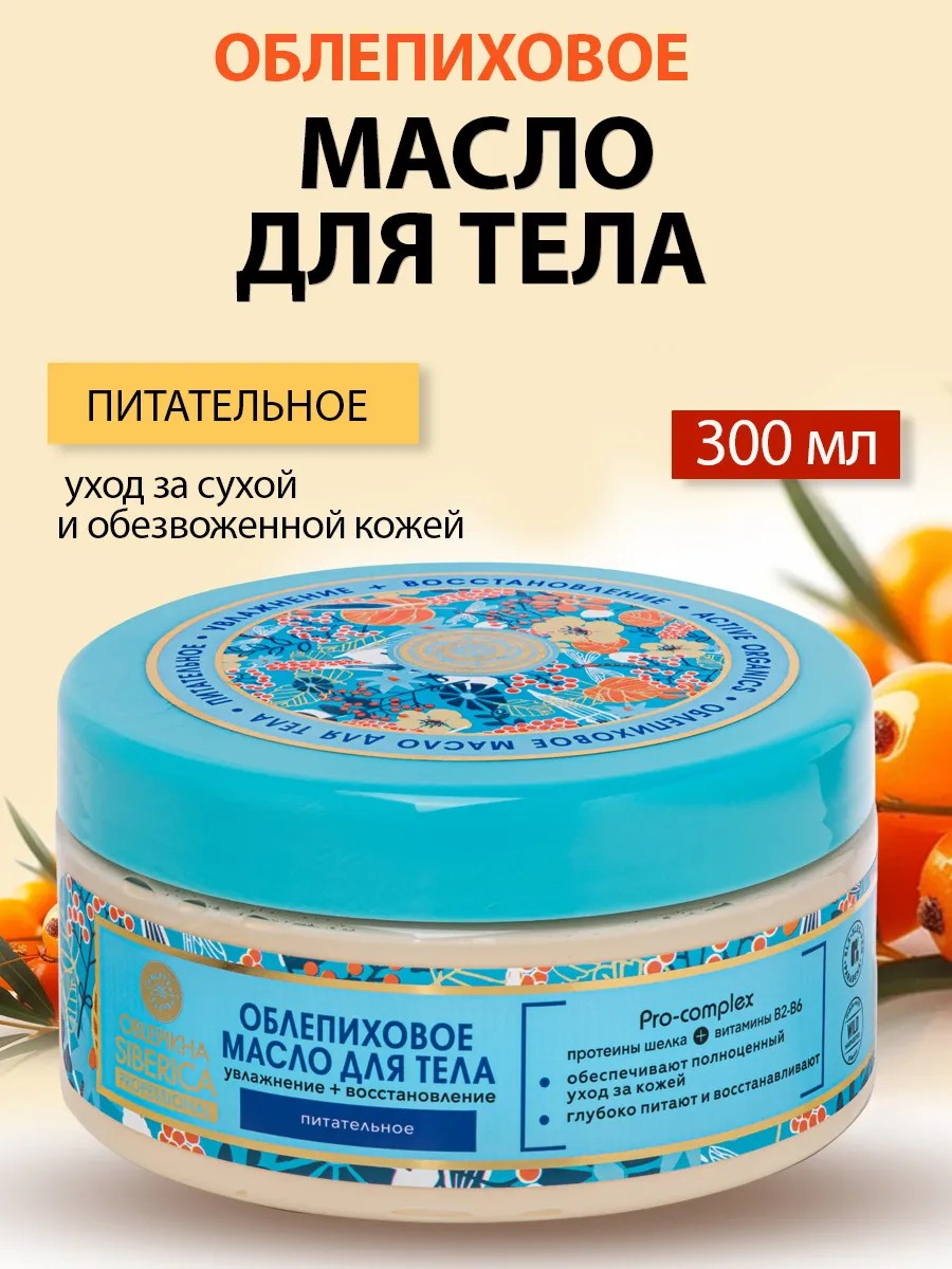 Для обеспечения полноценного ухода за обезвоженной и сухой кожей тела, эффективного ее увлажнения и насыщения питательными веществами, восстановления и существенного улучшения состояния в лаборатории косметической марки Natura Siberica разработали специальное питательное облепиховое масло для тела на основе масел облепихи алтайской, кедрового стланика и ягод сибирской рябины.Высокая эффективность данного продукта заключается в использовании для его изготовления высококачественных ценных и полезных ингредиентов натурального происхождения и инновационных передовых технологий. Благодаря маслу алтайской облепихи кожа тела получает превосходное увлажнение, насыщается питательными веществами и восстанавливается.Присутствие масла кедрового стланика способствует насыщению кожи важнейшими жирными кислотами, что так необходимо ей. За счет содержания масла ягод рябины сибирской кожа отлично напитывается влагой, становясь более мягкой и нежной.В составе питательного облепихового масла нет вредных для здоровья веществ:SLS - 0%;SLES - 0%;минеральных масел - 0%;парабенов - 0%;PEG - 0%;Glycols - 0%.