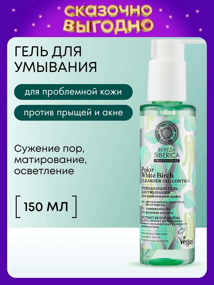 Natura Siberica Bereza Cleansing Gel for Problem Skin, 150 ml, gently removes impurities and excess sebum, providing perfect shine control after makeup removal.