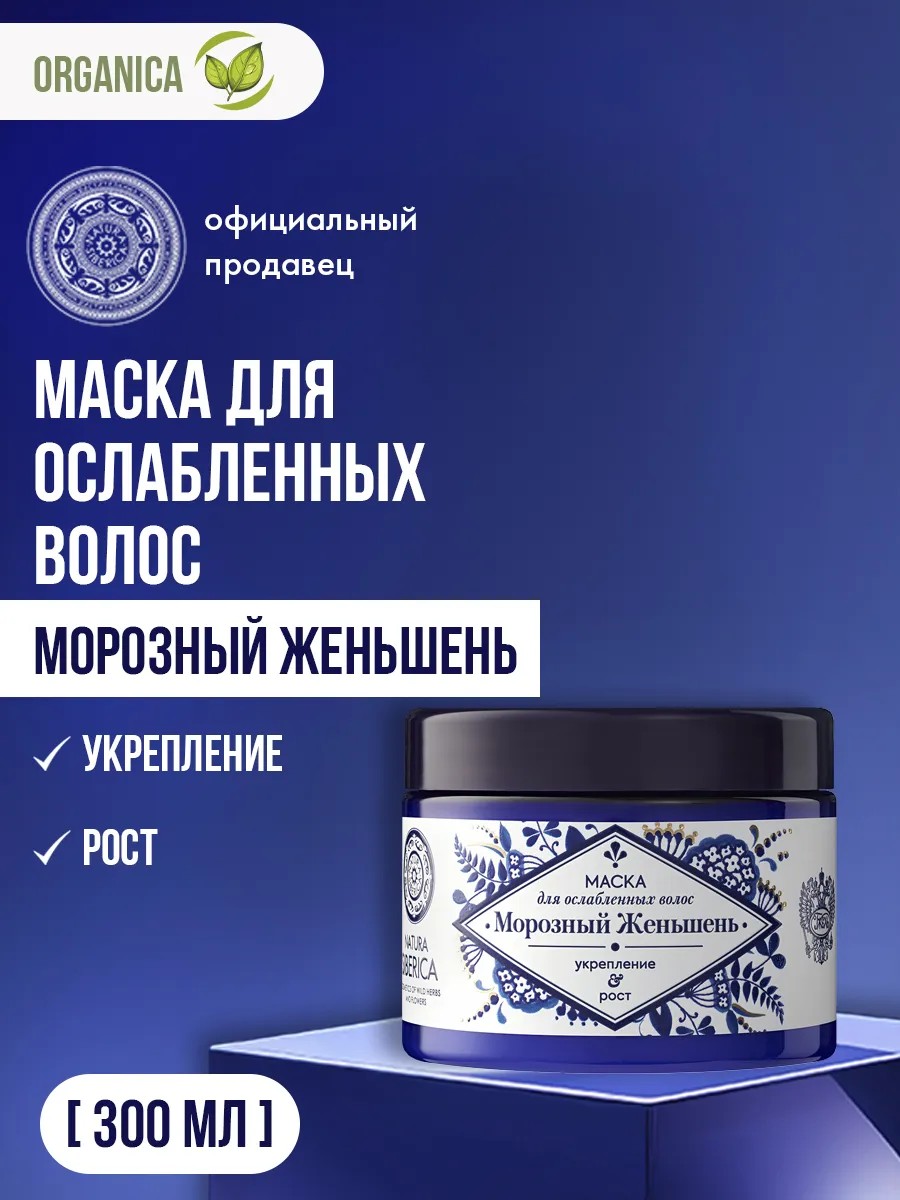 Маска для ослабленных и тонких волос Natura Siberica Гжель «Морозный женьшень» 300 мл создана для укрепления, восстановления и реконструкции хрупкой пористой структуры. Предотвращает выпадение и ломкость, способствует активации роста, сохранению длины и густоты, возвращает эластичность, плотность и силу.