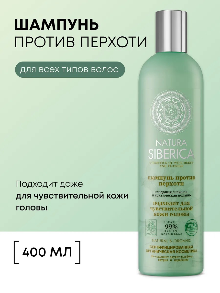 Бессульфатный шампунь от перхоти для всех типов волос Natura Siberica 400 мл подходит даже для чувствительной кожи головы, после окрашивания или химической завивки, кератинового выпрямления и процедуры ботокса. Мягкая формула на основе растительных аминокислот бережно очищает волосы, не нарушая естественный защитный барьер, предотвращая появление сухости и шелушений. Основанный на органических компонентах, очищающий и ухаживающий состав дает интенсивное питание, увлажнение и укрепление.