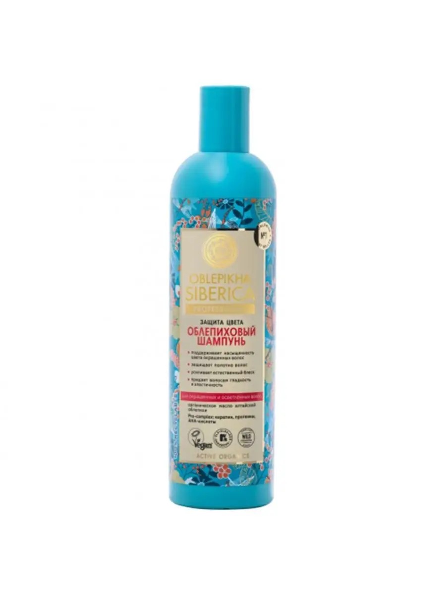 Шампунь поддерживает насыщенность цвета окрашенных волос, предотвращая его преждевременное вымывание. Шампунь для волос женский насыщает волосы влагой, питает и восстанавливает, усиливает естественный блеск. Волосы становятся гладкими и сияющими. Органическое масло алтайской облепихи – источник жирных кислот Омега 3,6,9 и редкой Омега 7, ответственных за здоровье и красоту волос. Марокканское масло арганы и масло семян клюквы комплексно восстанавливают структуру волос, придавая им непревзойденную мягкость и шелковистость. Экстракт даурского шиповника богат витамином С, который способен защитить волосы от потери влаги и придать им естественное сияние. Протеины в составе шампуня сиберика обволакивают поверхность волоса, предотвращающую вымывание пигмента. Кератин глубоко увлажняет и питает волосы, придавая им ухоженный внешний вид. AHA-кислоты мягко воздействуют на волосы способствуя их укреплению. Применение: нанести небольшое количество шампуня на влажные волосы, массирующими движениями взбить в пену, затем смыть водой. При необходимости повторить процедуру.