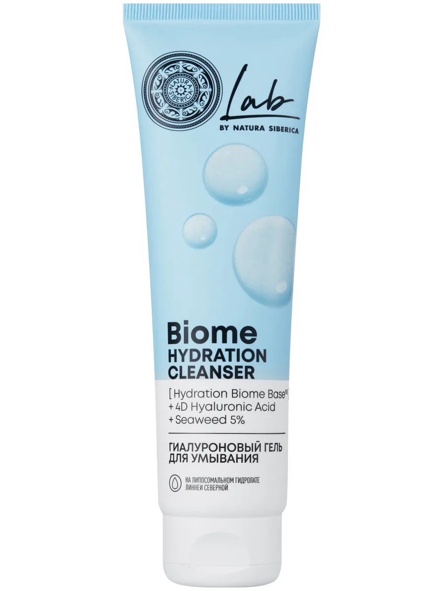 Гель Natura Siberica Lab Biome Hydration Cleanser Гиалуроновый для умывания, 150 мл. Гиалуроновый гель для умывания на липосомальном гидролате линнеи северной Мягкий освежающий гель глубоко очищает кожу и поры, не оставляя чувства стянутости. Мгновенно увлажняет и насыщает кожу кислородом для поддержания её естественных функций. Hydration Biome Base Уникальная биом-база на ферментированном экстракте кладонии снежной с лизатами лакто- и бифидобактерий создана для глубокого увлажнения и укрепления иммунитета кожи Активные ингредиенты: 4D гиалуроновая кислота увлажняет и защищает кожу от дегидратации на всех уровнях. Гликопротеины северной ламинарии стимулируют выработку собственного коллагена, улучшают текстуру кожи. Состав:Aqua with infusion of Linnaea Borealis Water*, Phospholipids (липосомальный гидролат линнеи северной), Flavocetraria Nivalis Ferment Filtrate (ферментированный экстракт кладонии снежной), Laminaria Angustata ExtractWH (экстракт ламинарии северной), Trifolium Pratense Flower Extract* (экстракт клевера лугового), Comarum Palustre Extract* (экстракт сабельника болотного), Rhaponticum Carthamoides Root ExtractWH (экстракт левзеи сафлоровидной), Nepeta Sibirica Flower/Leaf/Stem ExtractWH (экстракт котовника сибирского) ; Sodium Coco Sulfate, Cocamidopropyl Betaine, Glycerin, Betaine, Sodium PCA, Coco-Glucoside, Glyceryl Oleate, Pineamidopropyl BetainePS, Hippophae Rhamnoidesamidopropyl BetaineHR, Lactobacillus Ferment Lysate, Bifida Ferment Lysate, Lactococcus Ferment Lysate, Sodium Hyaluronate Crosspolymer, Sodium Hyaluronate, Sodium Acetylated Hyaluronate, Hydrolyzed Hyaluronic Acid, Galactoarabinan, Guar Hydroxypropyltrimonium Chloride, Parfum, Citric Acid, Sodium Chloride, Dehydroacetic Acid, Benzyl Alcohol, 1,2-Hexanediol, Sodium Benzoate, Potassium Sorbate. * ? Органические ингредиенты. WH ? Органические экстракты дикорастущих растений Сибири. PS Производное масла сибирского кедра. HR Производное масла алтайской облепихи