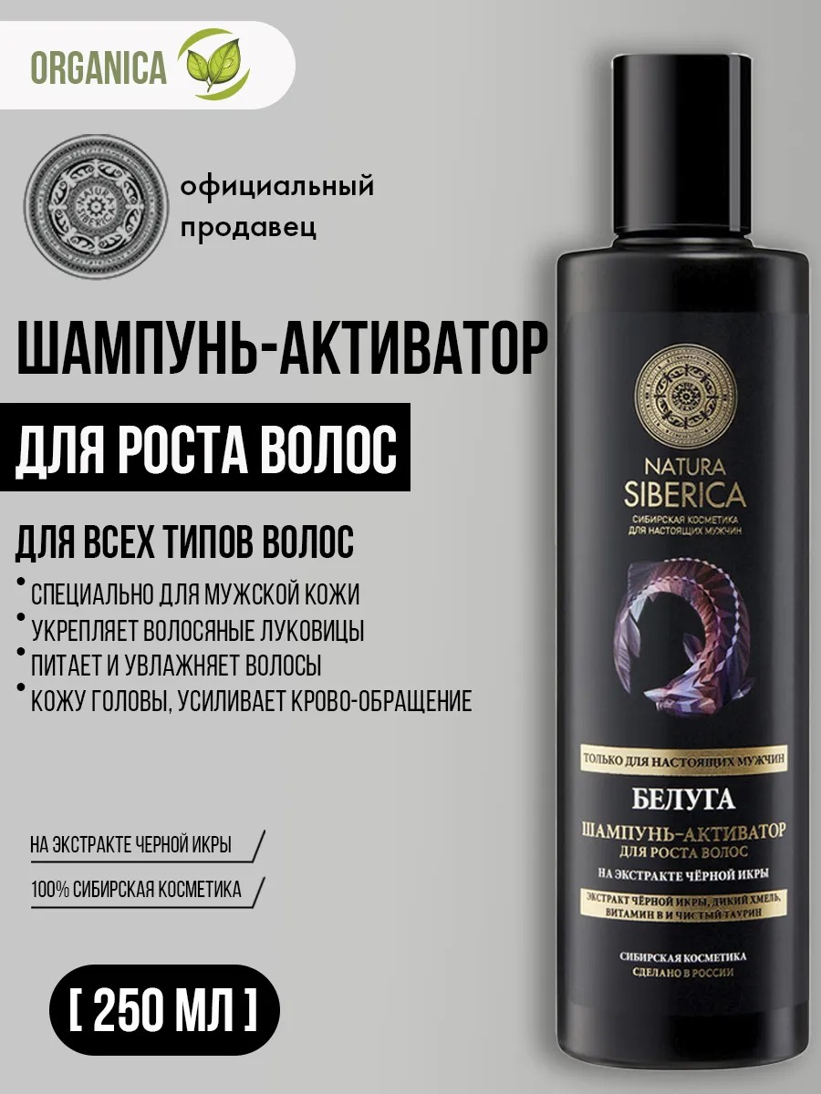 Шампунь-активатор «Белуга» интенсивно очищает кожу головы и волосы, сокращает выпадение, активизирует рост волос.Создан для настоящих мужчин – сильных, смелых и уверенных в себе! В состав входит уникальный ценный ингредиент – экстракт икры белуги - богатейший источник омега-3 и жирных кислот, белков, витаминов, микроэлементов. Стимулирует рост волос, укрепляет волосяные луковицы, питает и увлажняет волосы.