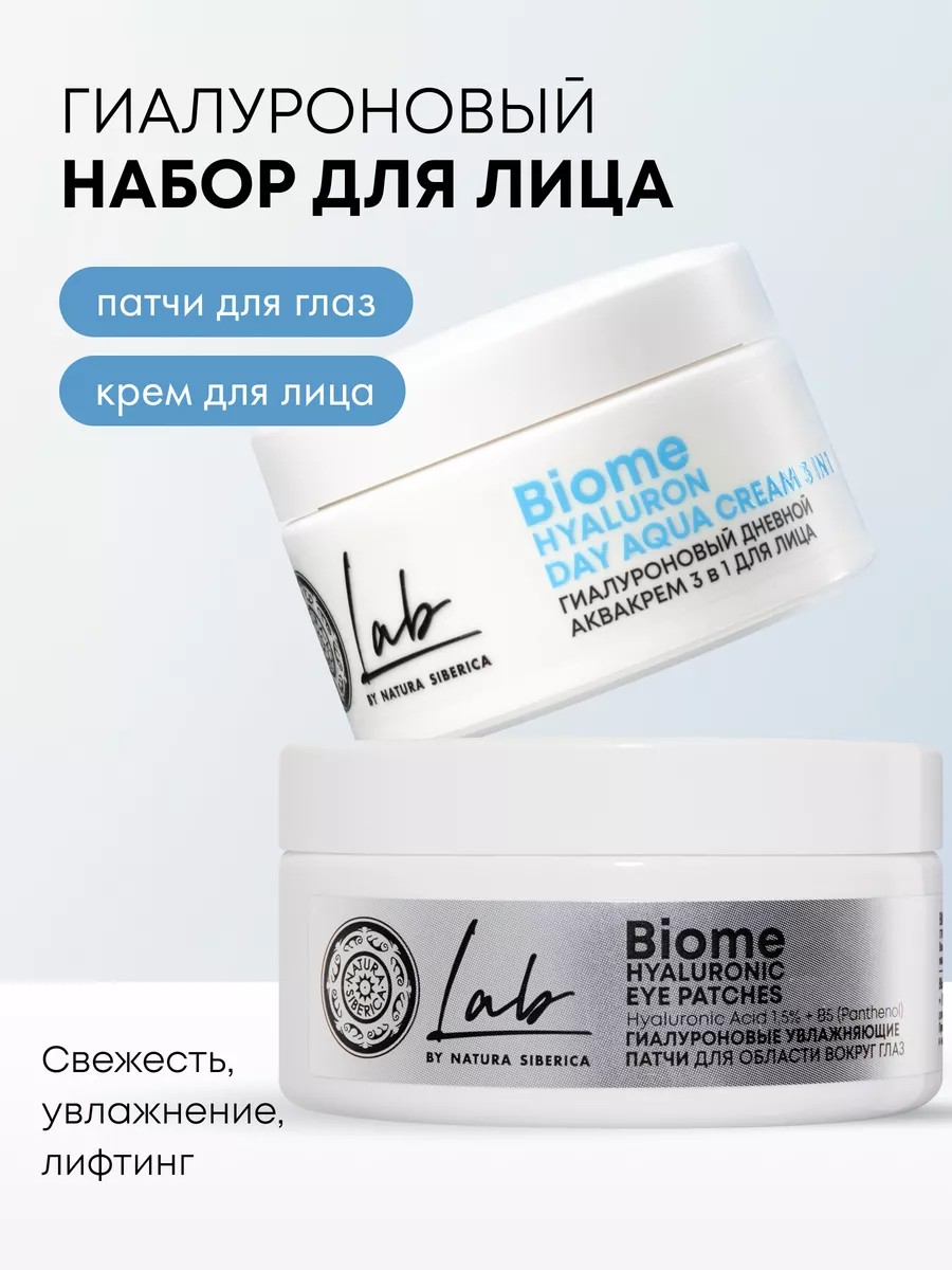 Дневной гиалуроновый аквакрем 3 в 1 Natura Siberica LAB Biome Hyaluron day aqua cream 50 мл увлажняет, питает и восстанавливает защитный барьер эпидермиса. Оказывает легкий лифтинг-эффект подтяжки овала лица, сокращает видимость мимических морщинок. Подходит для всех типов молодой и зрелой кожи. Очень сухой, обезвоженной и чувствительной, склонной к сухости, нормальной и комбинированной.