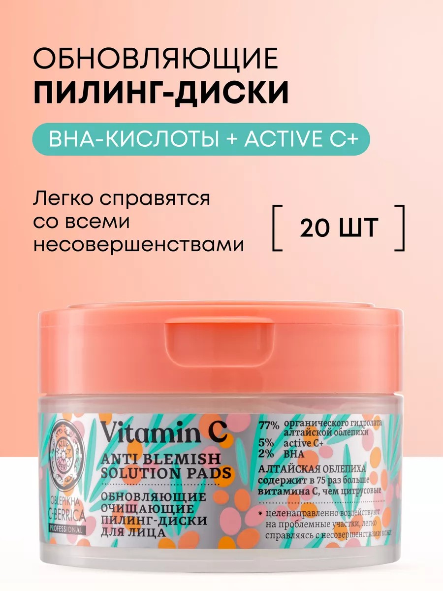 Очищающие пилинг-диски Oblepikha C-BERRICA Anti blemish solution pads мгновенно преображают кожу — она становится мягкой, гладкой и свежей. Кислотные пилинг-пэды дают глубокое очищение, предотвращают появление воспалений, черных точек и жирного блеска.