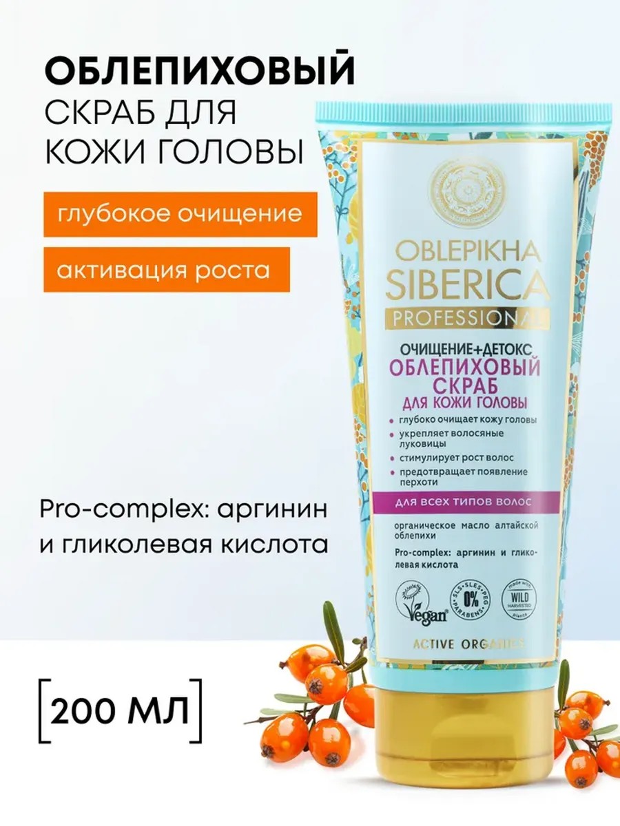 Облепиховый скраб для кожи головы Глубокое очищение и детокс Natura Siberica устраняет ороговевший эпидермис и удаляет остатки средств для укладки. Помогает избавиться от перхоти и шелушений, питает, способствует активации роста волос.