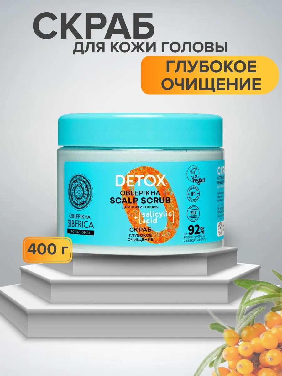 Облепиховый скраб для кожи головы Глубокое очищение Detox устраняет ороговевший эпидермис и удаляет остатки средств для укладки. Помогает избавиться от перхоти и шелушений, питает, способствует активации роста волос.