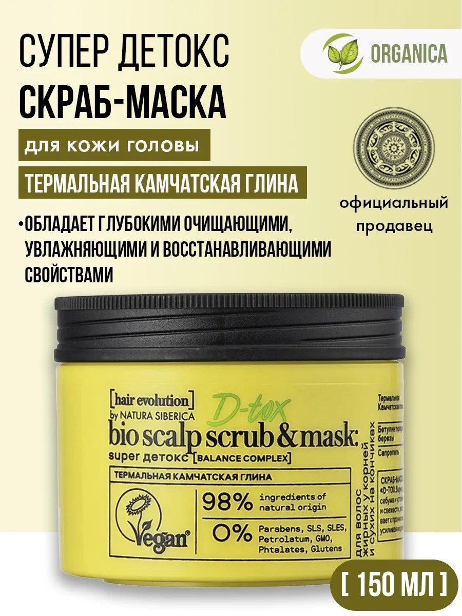 Скраб-маска для кожи головы перед мытьем головы «D-tox. Super детокс» очищает кожу головы, удаляя излишки себума и устойчивые загрязнения, придает ощущение чистоты и свежести, восстанавливает здоровый баланс влаги, подготавливает к проникновению ингредиентов из последующих этапов ухода, усиливая их действие.