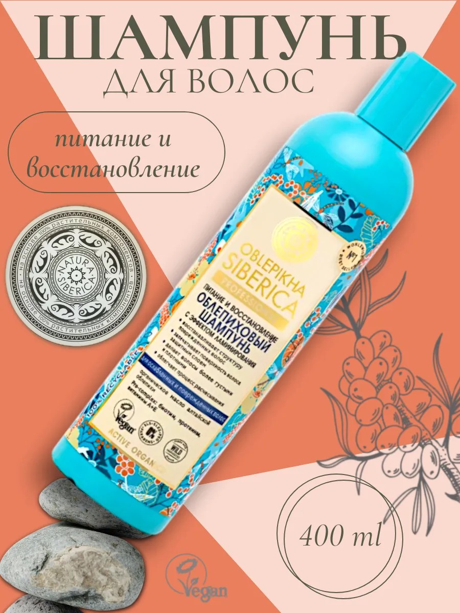Natura siberica Облепиховый шампунь для повреждённых волос, 400 мл.