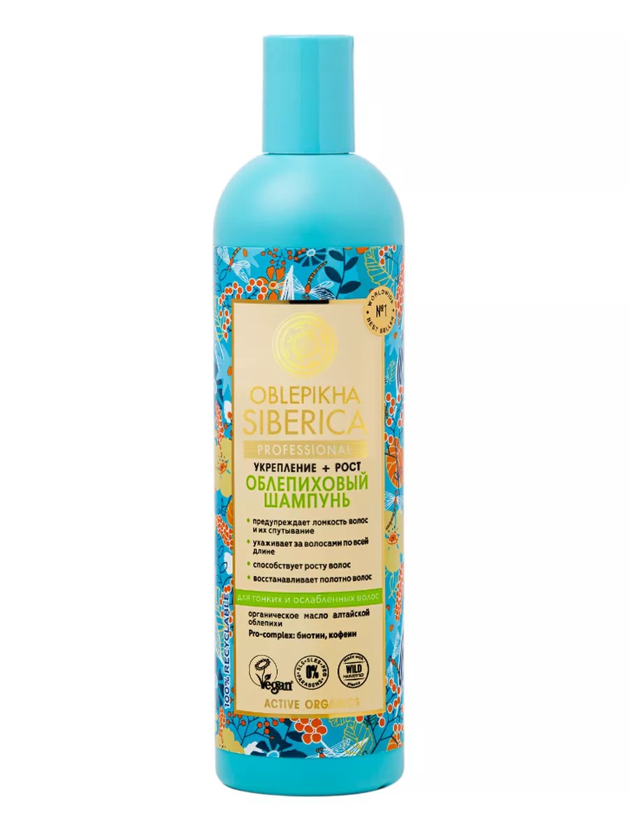 Natura Siberica, Шампунь облепиховый для для тонких и ослабленных волос 400 мл. Шампунь деликатно ухаживает за волосами по всей длине, делая их более сильными и крепкими. Средство оказывает комплексное воздействие на тонкие, ослабленные волосы, обеспечивая их более ускоренный рост. Органическое масло алтайской облепихи и марокканское масло арганы – источники жирных кислот Омега 3,6,9 и редкой Омега 7, ответственных за здоровье и красоту волос. Экстракт курильского бамбука укрепляет и защищает волосы, способствует их активному росту. Экстракт женьшеня сибирского, содержащий витамины, макро- и микроэлементы, оказывает тонизирующее и укрепляющее действие на волосы. Биотин пробуждает спящие волосяные луковицы, ускоряя тем самым процесс роста волос. Кофеин активизирует клеточный метаболизм, способствуя уменьшению выпадения волос.