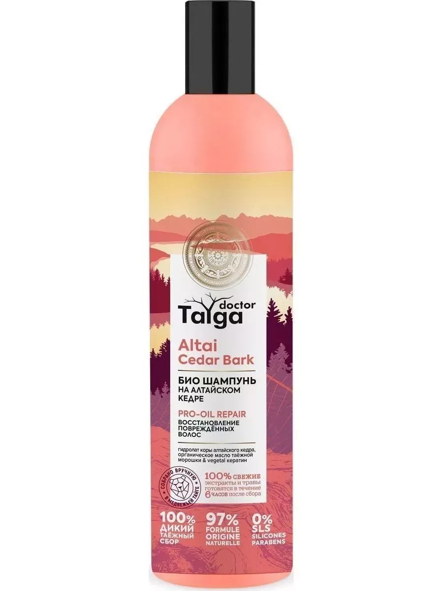 Био шампунь восстановление поврежденных волос PRO OIL REPAIR Altai Cedar Bark Эффективное преображение ломких и поврежденных волос. Насыщенная формула восстанавливает их от корней до кончиков, облегчает расчесывание. Волосы становятся легкими и одновременно более крепкими. Кора алтайского кедра содержит эффективную комбинацию витаминов С, F и феруловой кислоты, в 8 раз увеличивающую защитную функцию волос, наполняет их невероятной силой по всей длине. В таежной морошке содержание витамина Е главного витамина молодости, в 3 раза выше, чем в масле кокоса, и в 5 раз выше, чем в оливковом. Органическое масло таежной морошки эффективно восстанавливает и разглаживает поврежденные волосы, придает ухоженный вид и роскошный блеск.