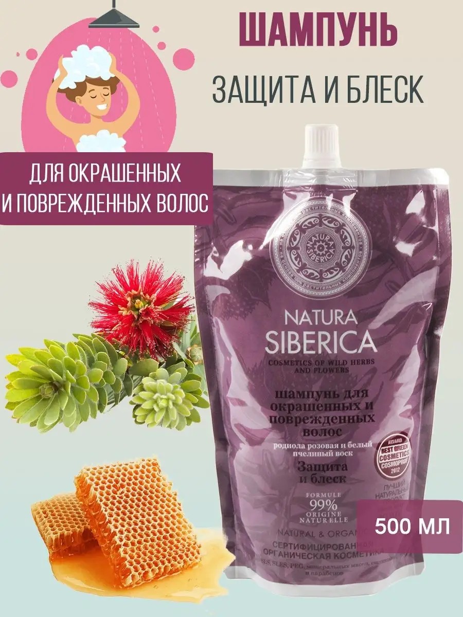 Natura Sibericа Шампунь для поврежденных волос Защита и блеск Дой пак 500мл