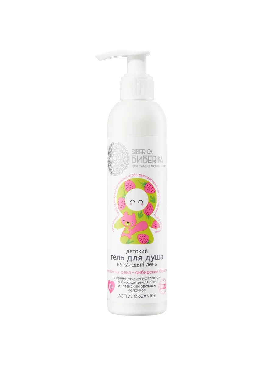 Детский гель для душа «Молочная река-сибирские берега» Ваш любименький малыш нуждается в трепетном уходе и нежной заботе! Подарите ему всё самое лучшее, что даёт нам природа. Гель для душа нежно очищает кожу во время купания, натуральные компоненты, входящие в его состав, обеспечивают мягкий уход, не вызывая чувства сухости и стянутости. Органический экстракт сибирской земляники смягчает и оздоравливает кожу, насыщая ее необходимыми витаминами, дарит летний аромат спелой земляники, который обязательно понравится Вашему малышу. Органический экстракт мыльнянки – натуральная моющая основа, легко смывается и не сушит кожу. Алтайское овсяное молочко питает и увлажняет кожу, снимает раздражение и шелушение. Заповедный регион Сибири известен своими уникальными природными условиями и произрастающими исключительно там ценнейшими видами растений, которые обладают невероятной пользой. Входящие в состав экстракты получены из растений, выращенных на нашей органической ферме, в Хакасии, которая получила сертификат качества Европейского био-стандарта ЕU 834/07. Используя нашу натуральную косметику, Вы можете быть уверены, что выбираете лучшее для здоровья Вашего ребенка, а прекрасное настроение и задорный смех любимого малыша – это лучшая награда для нас и его мамы!