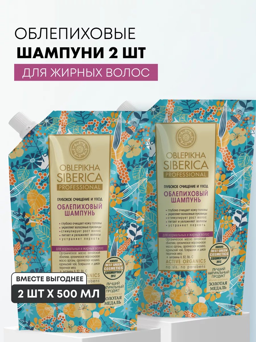 Облепиховый шампунь для нормальных и жирных волос Natura Siberica Oblepikha Professional «Глубокое очищение и уход» 2 шт х 500 мл нормализует баланс кожи головы, питает и укрепляет волосяные луковицы. Детокс очистка и укрепляющая формула способствуют стимуляции активации роста волос и сокращению их выпадения. После применения тонкие локоны приобретают жизненную силу и необыкновенное ощущение свежести. Большого объема 1 литр (1 л) в мягкой упаковке хватит надолго.