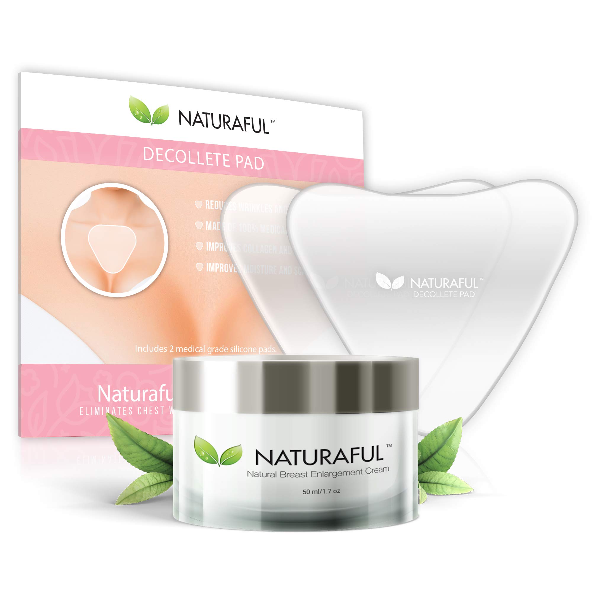 100 medical grade silicone in NATURAFUL Decollete Pad keeps the skin between your breasts firm while you sleep, which is why they work so well in preventing wrinkles. By drawing the natural skin moisture to the surface, it helps heal wrinkles faster. This also helps prevents new wrinkles and reduces the ones that already exist.