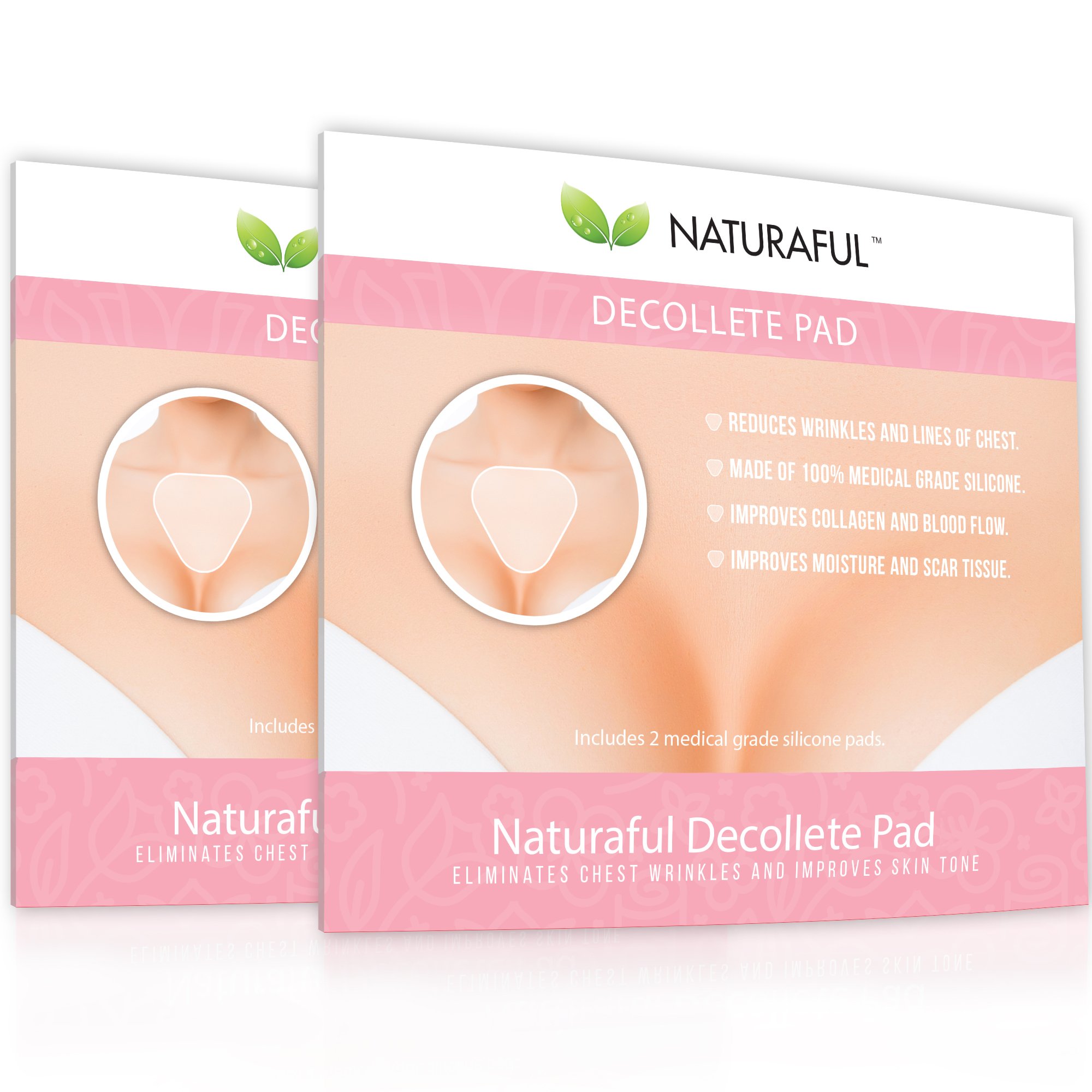 100 medical grade silicone in NATURAFUL Decollete Pad keeps the skin between your breasts firm while you sleep, which is why they work so well in preventing wrinkles. By drawing the natural skin moisture to the surface, it helps heal wrinkles faster. This also helps prevents new wrinkles and reduces the ones that already exist.