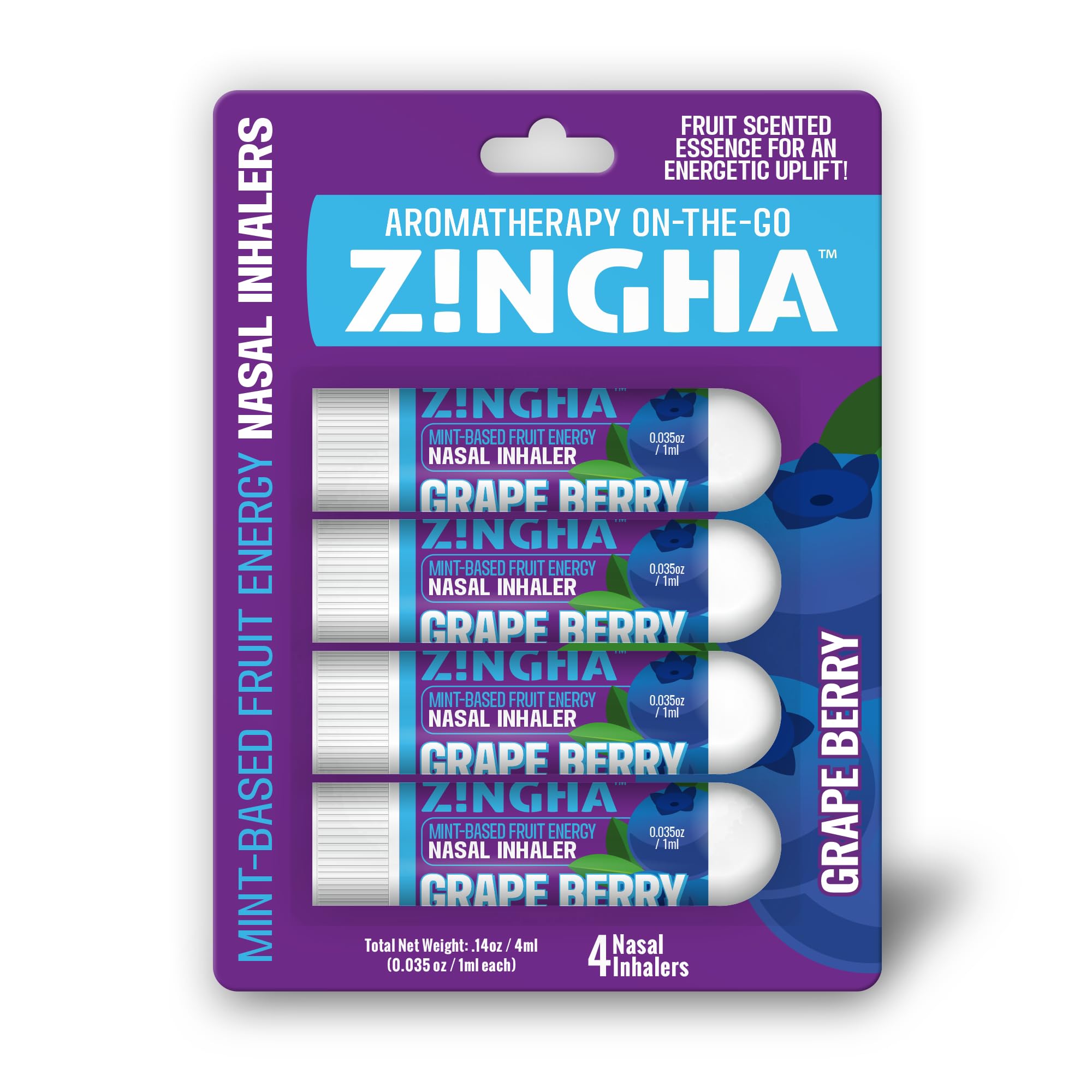 Natural Aromatherapy Nasal Stick Boost Focus & Enhance Breathing | Portable Sinus Relief & Relaxation Nasal Inhaler Stick | Essential Oil Blend for Stress and Congestion (Grape Berry) 4pk Grape Berry