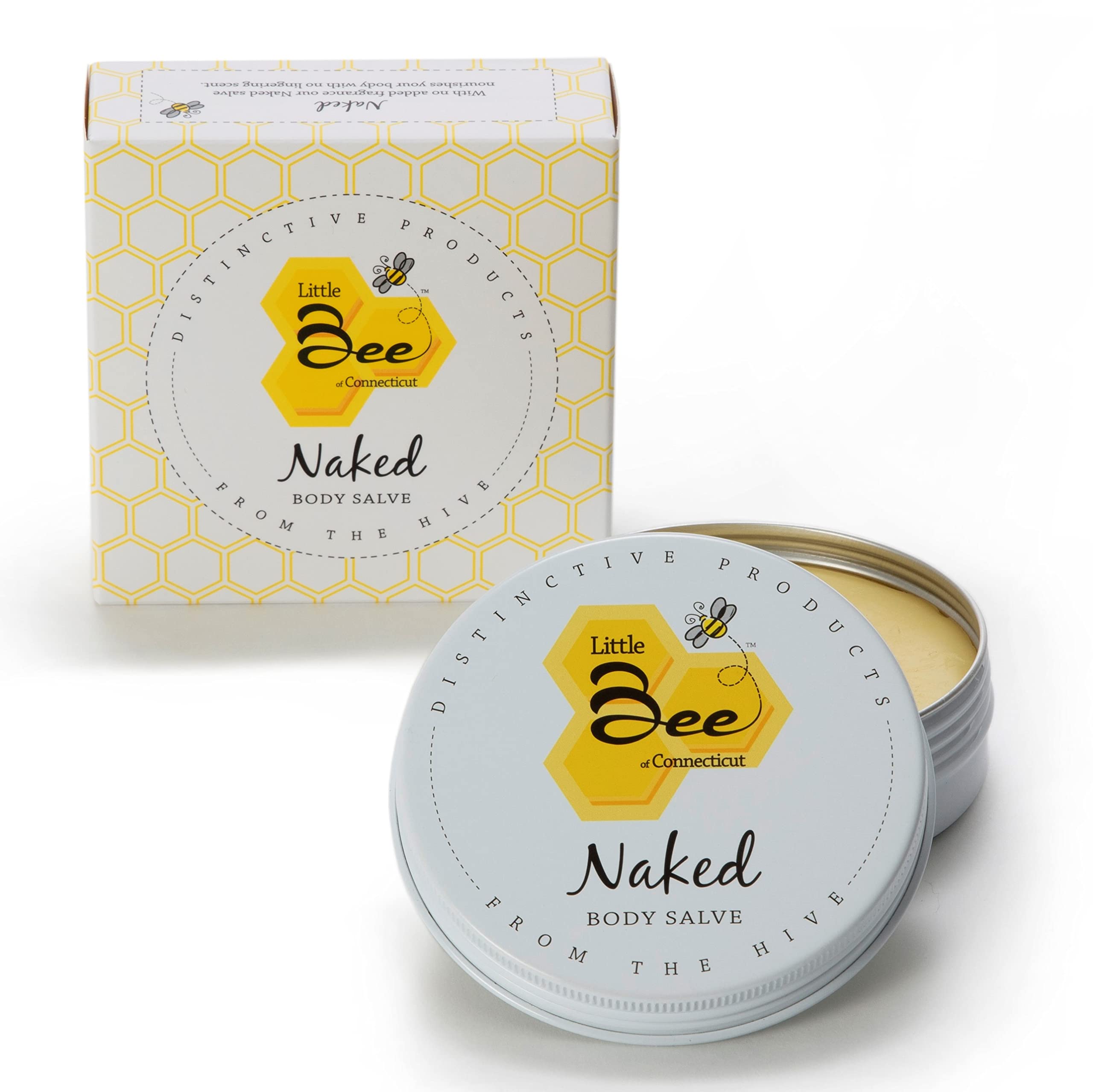 Little Bee of Connecticut Body Salve was developed to provide natural moisture to all your dry skin areas including hands, elbows, knees, and feet. Our formula contains a blend of natural oils and pure beeswax to soothe and condition skin. Naked is free of any added fragrances Net Weight: 3oz For external use only. Also available in scented versions (Chill Soothe). Little Bee of Connecticut - A Martha Stewart American Made Maker (2016-2018) Contains only these simple ingredients: Olive Oil Coconut Oil Beeswax Vitamin E Oil