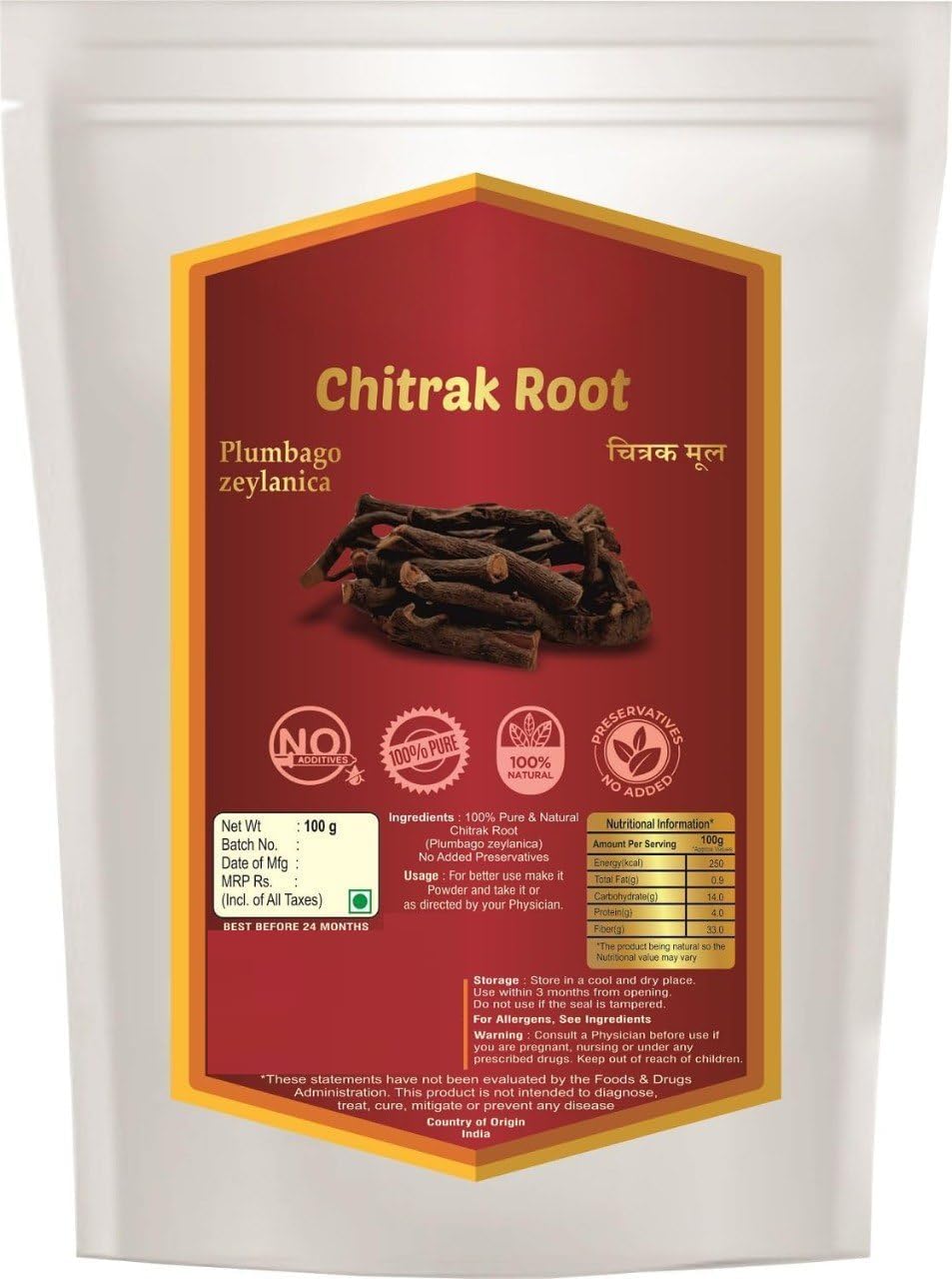Natural Chitrak Root - Chitramoola Root - Plumbago zeylanica - Chitrakmool - Chitrak Mool - Chita Mool - 100 g