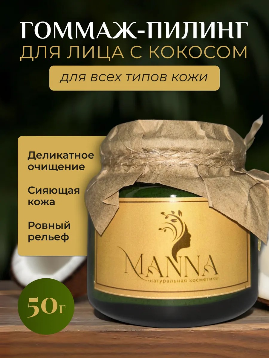 Natural Косметика MANNA Гоммаж пилинг для лица с кокосом; убтан очищающий