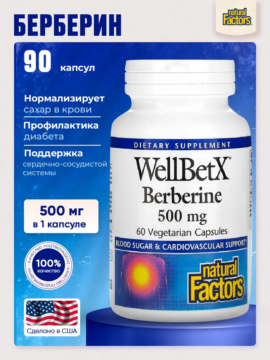 Natural Factors Берберин 500мг – это высококачественная спортивная добавка, произведенная в США. Каждая капсула содержит 500 мг берберина, экстракта, известного своими полезными свойствами для поддержки обмена веществ и улучшения общего состояния организма. С добавлением берберина в ваш рацион вы можете не только способствовать улучшению усваиваемости питательных веществ, но и поддерживать нормальный уровень сахара в крови, что особенно важно для активных людей и спортсменов.