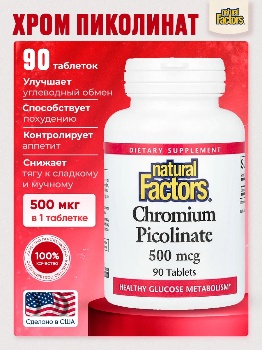Natural Factors Хром Пиколинат 500мг. 90 шт. (США, 100% оригинал)