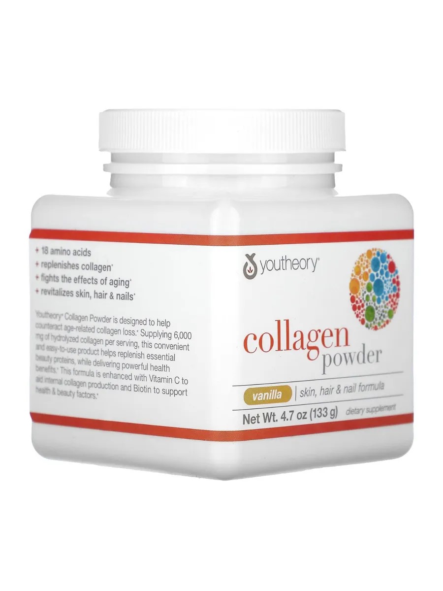 Добавка с коллагеном: порошок коллагена Youtheory помогает восполнить этот жизненно важный белок для поддержки кожи, волос, ногтей, сухожилий и связок*